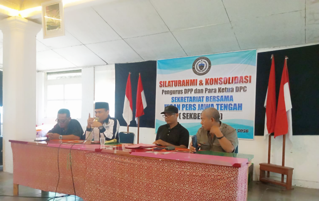 PEKALONGAN – Dewan Pengurus Pusat Insan Pers Jawa Tengah (DPP IPJT) menggelar pertemuan konsolidasi sekaligus silaturahmi dengan para pimpinan Dewan Pengurus Cabang (DPC) se-Jawa Tengah. Pertemuan tersebut berlangsung di Kawasan Kuliner Keraton, Jalan Diponegoro Nomor 20, Kota Pekalongan, Minggu (12/4/2026).