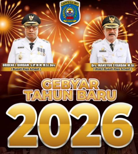 Pusat kegiatan malam kunci tahun 2025-2026 ” Gebyar Tahun Baru 2026 “, akan dipusatkan di depan kantor Bupati Raja Ampat dan Taman Hutan Rakyat, berbagai kegiatan akan dilakukan disana.