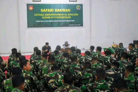 GROBOGAN, Kodim 0717/Grobogan memperkuat fondasi moral prajurit lewat Pembinaan Mental dan Rohani. Safari Dakwah Ustadz Abdurrahman Al Banjari digelar di Aula Makodim, Senin (27/4/2026), dengan tema “Iman dan Cara Meneladani Nabi Muhammad SAW”.