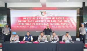 SEMARANG – Kepolisian Daerah Jawa Tengah mengungkap kasus penipuan bermodus penerimaan Taruna Akademi Kepolisian (Akpol) tahun 2025. Pengungkapan ini disampaikan dalam konferensi pers ungkap kasus menonjol yang digelar di lobi Mapolda Jateng, Rabu (5/11/2025) siang, dipimpin Wakapolda Jateng Brigjen Pol Latif Usman, didampingi Dirreskrimum Kombes Pol Dwi Subagio, Kabid Propam Kombes Pol Saiful Anwar, Kabid Humas Kombes Pol Artanto, dan pejabat utama lainnya.
