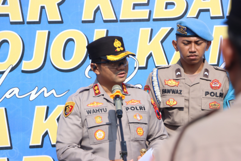 Kegiatan ini dipimpin langsung oleh Kapolres Wonogiri AKBP Wahyu Sulistyo, S.H., S.I.K., M.P.M., dan diikuti oleh komunitas ojek online (ojol) serta serikat pekerja dari berbagai wilayah di Kabupaten Wonogiri.