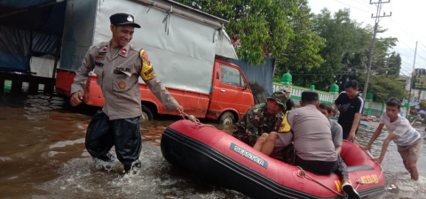Selain pengaturan lalu lintas, petugas turut melakukan upaya kemanusiaan dengan membantu warga di area terdampak, termasuk pengerahan perahu karet untuk evakuasi dan bantuan teknis, serta pengaturan khusus bagi kendaraan besar yang melintas.